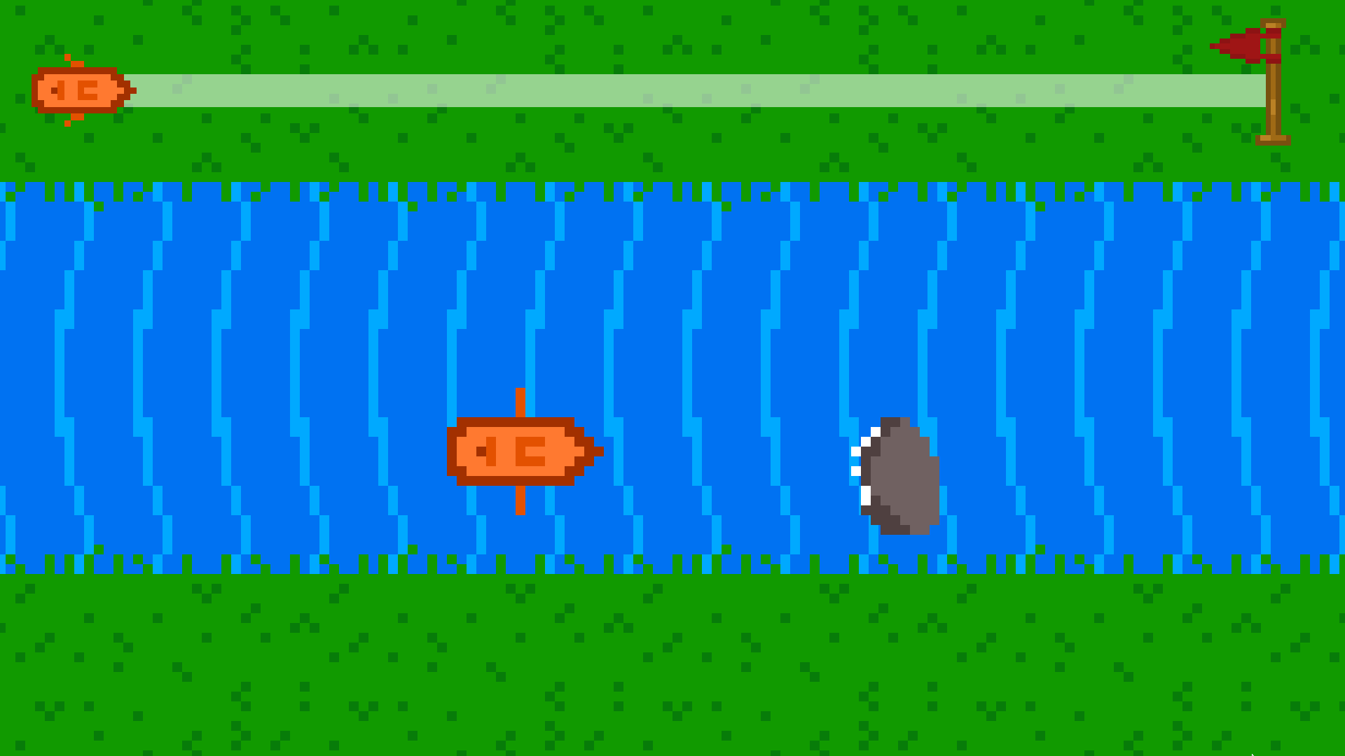 A one-button game made in 2 weeks for game design 2 with the theme boating. You must guide the boat to avoid obstacles, including rocks, logs, sharks, seagulls, and currents. Press the spacebar to move from side to side to avoid most obstacles and hold the spacebar to move forward, away from the sharks.